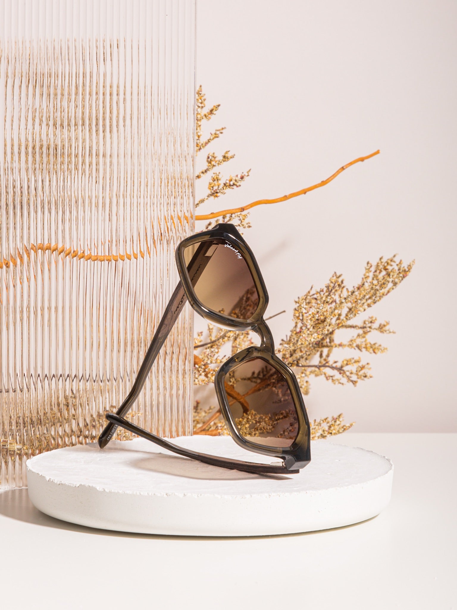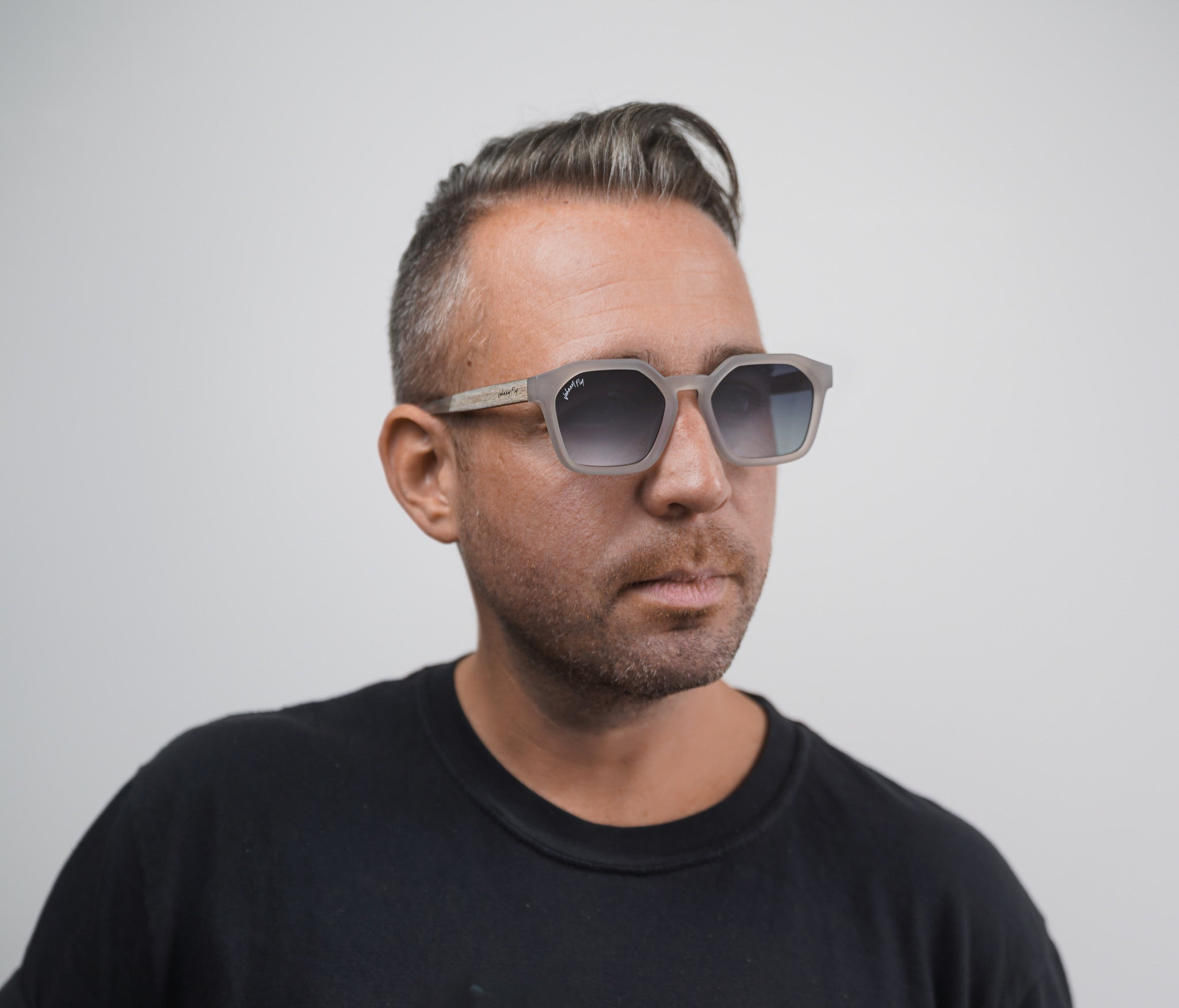 This cutting edge design features our concave cut design, created with an acetate front section, layered wooden arms, and spring hinges that make them Johnny Fly.